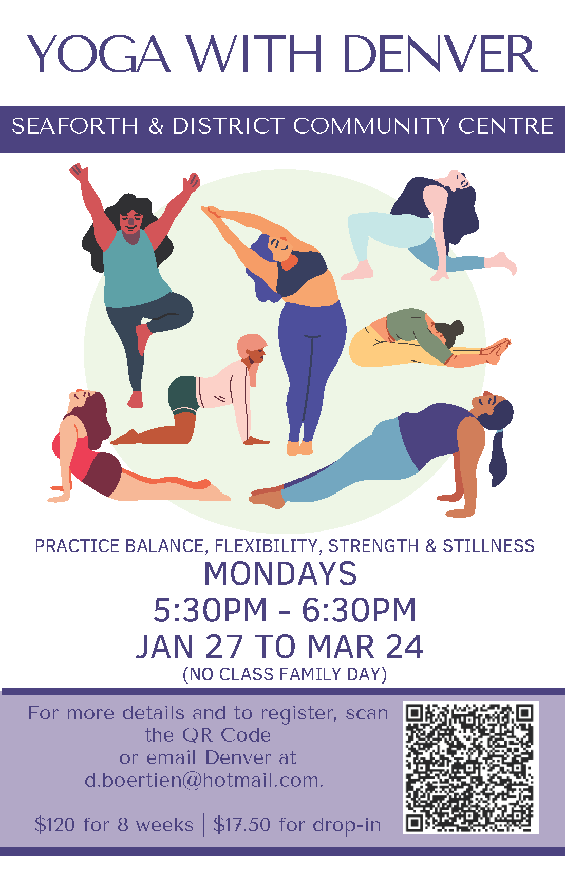 For more details and to register, scan the QR code on the poster or email Denver at d.boertien@hotmail.com.