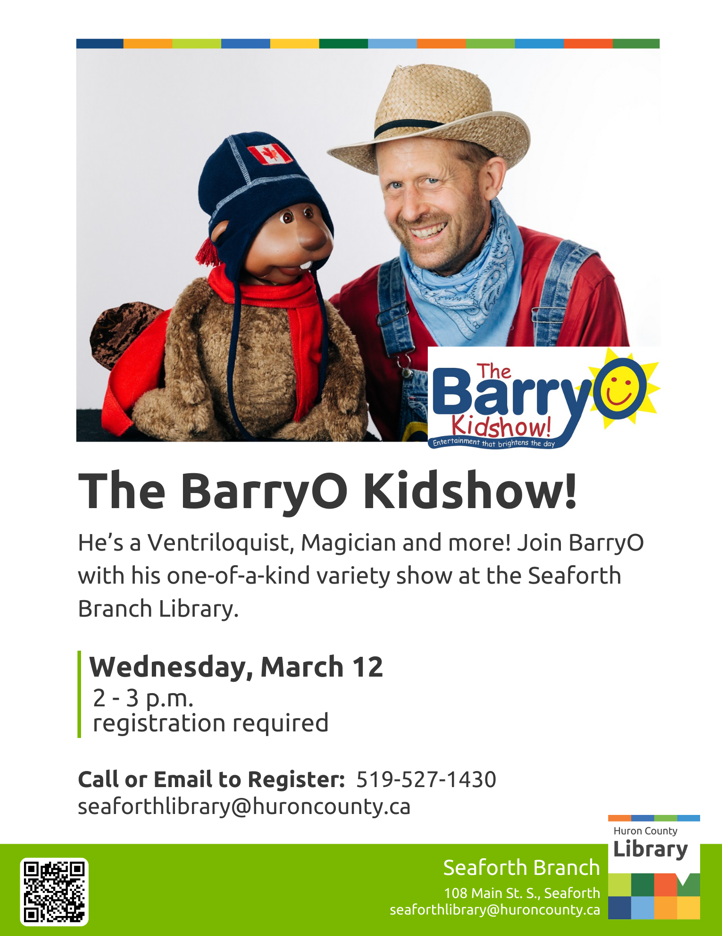 Join BarryO with his one-of-a-kind variety show at the Seaforth Branch Library.