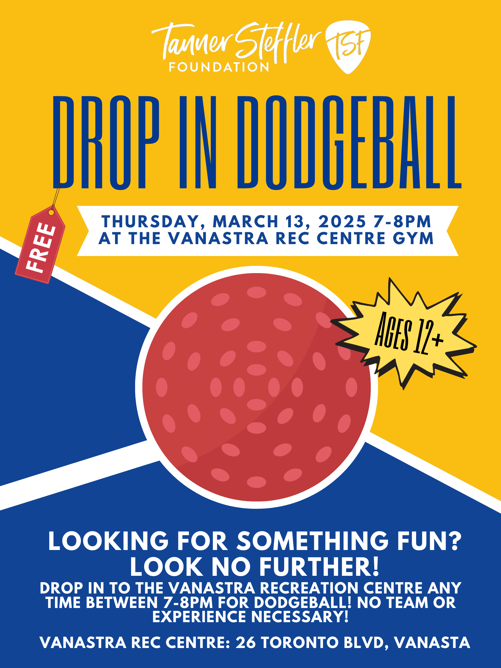 Free Drop-In Dodgeball hosted and sponsored by the Tanner Steffler Foundation.