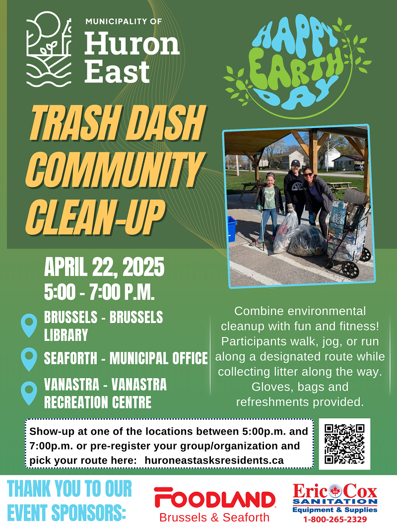To pre-register yourself or group/organization for the event and pick your route, please visit: https://huroneastasksresidents.ca/trash-dash-community-clean