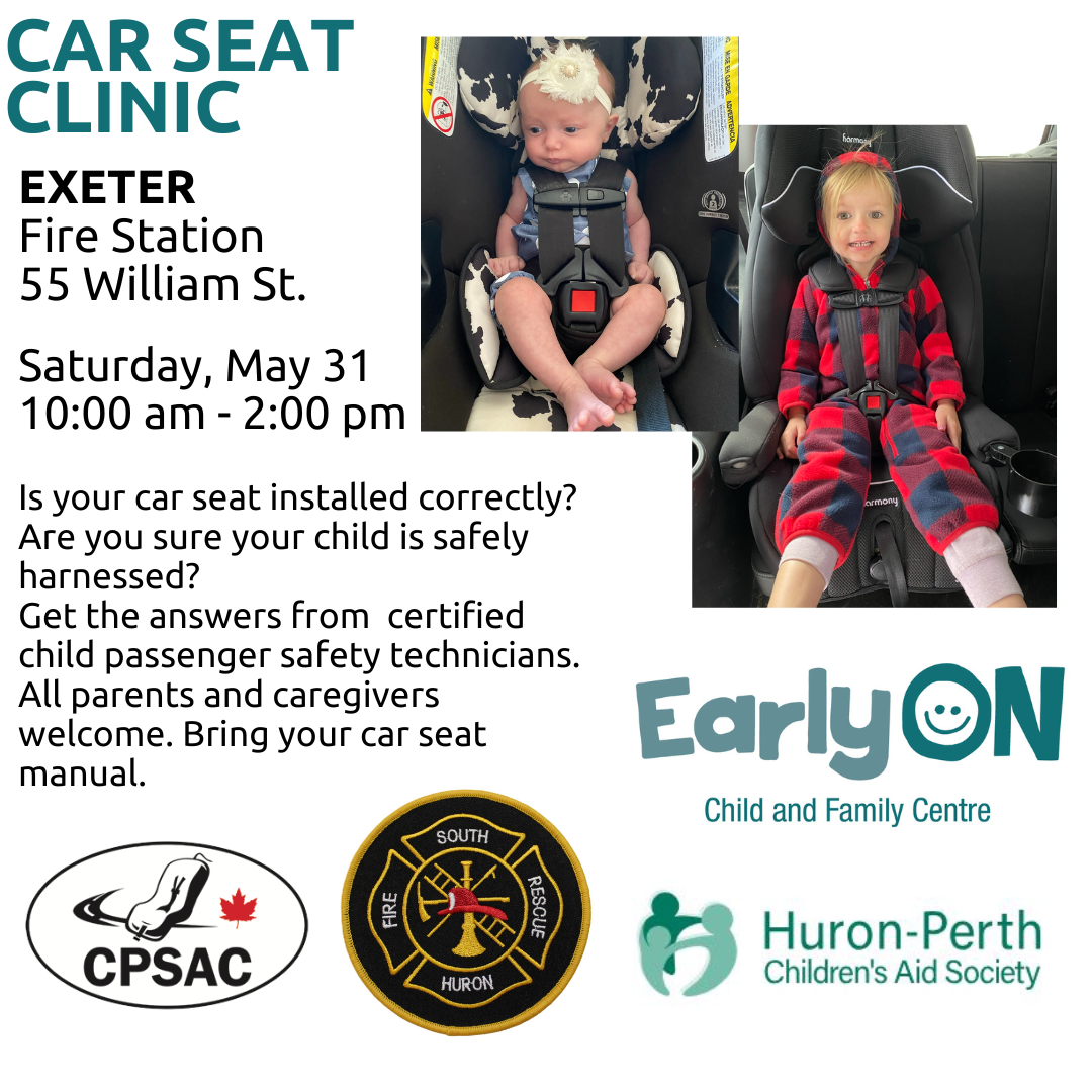 Hosted by Huron EarlyON, Huron-Perth CAS, South Huron Fire Department, and the Child Passenger Safety Association of Canada.