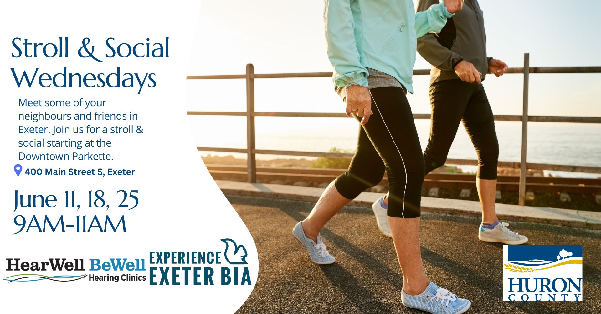 Come take stroll and socialize with friends through our downtown core. Starting at the downtown Parkette of Exeter you can enjoy our historical buildings and shop windows and enjoy some exercise with some friends. Join us afterwards for activities every week to connect and learn more about your community.