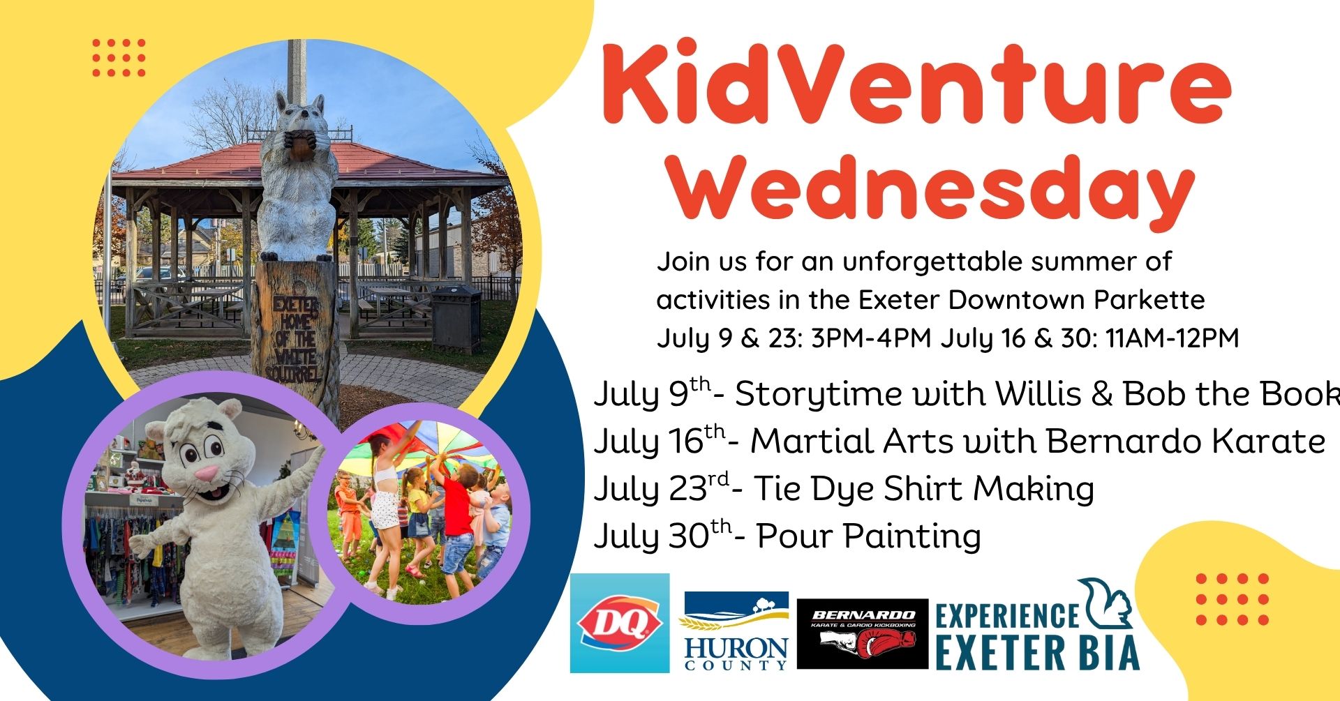 Join us for some summer fun in the Downtown Parkette and enjoy a stroll through our Historic Downtown. Don't forget to take advantage of the Family Public Swim before or after our summer fun and make it an afternoon in Exeter!