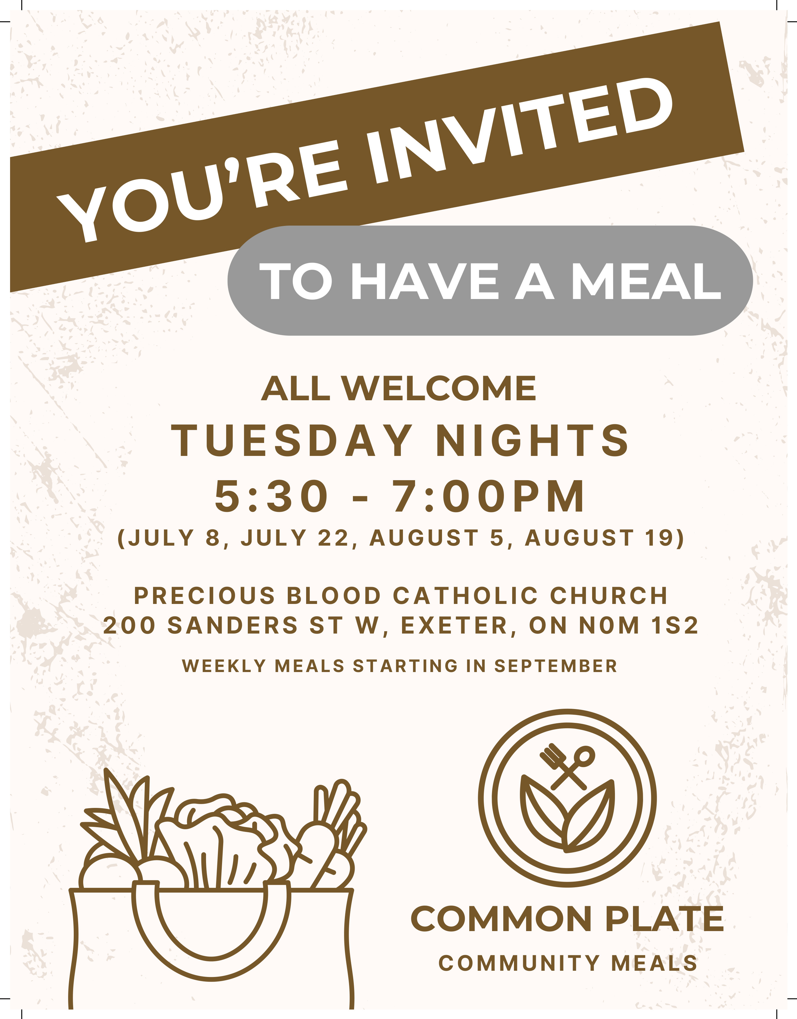 Anyone in need of food and/or connection are invited to Precious Blood Catholic Church from 5:30-7pm for a FREE meal!