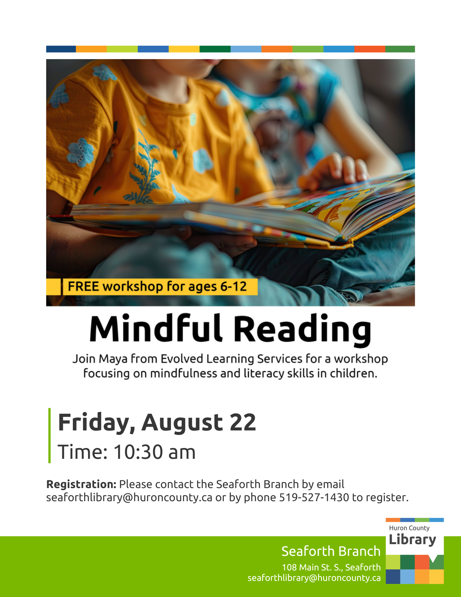 Registration required: Please call or email, 519-527-1430 or seaforthlibrary@huroncounty.ca