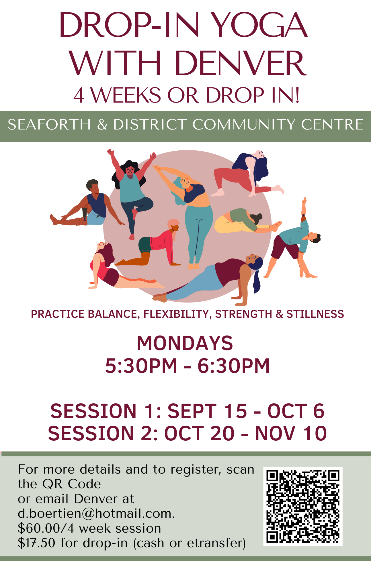 Cost: $60/4 week session or $17.50 per class for drop-in (cash or e-transfer)