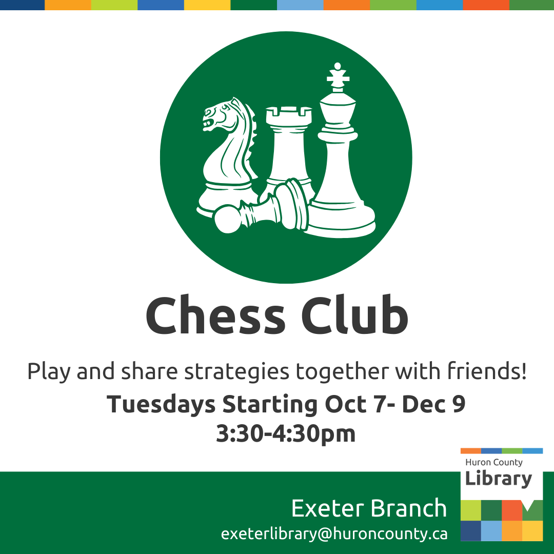Join us Tuesdays for Drop-In Chess Club at the Exeter Branch! Play and share strategies together with friends! Recommended Ages 8-12. This is a drop-in program, no registration is necessary