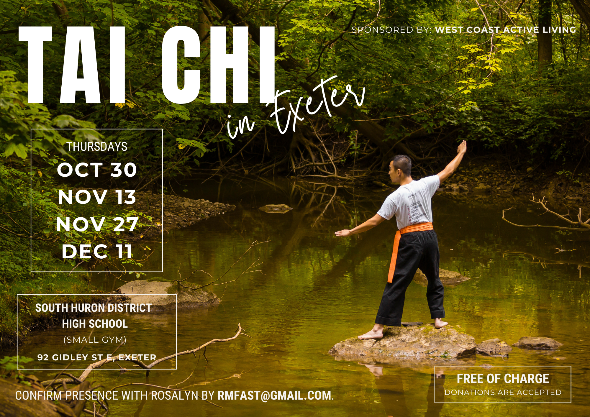 TAI CHI with Rosalyn at South Huron Rec Centre rmfast@gmail.com