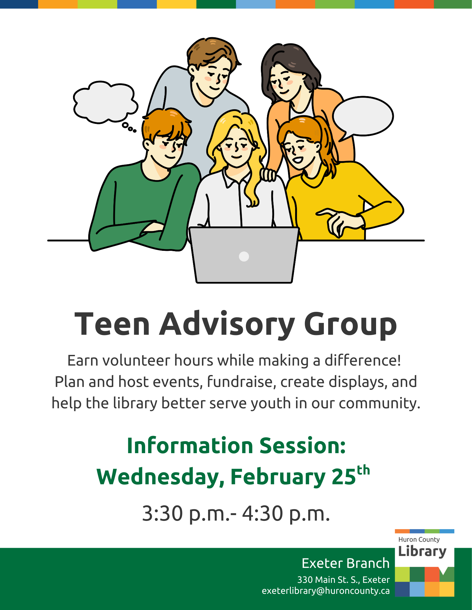 Earn volunteer hours while making a difference! Plan and host events, fundraise, create displays, and help the library better serve youth in our community. Information Session: Wednesday, February 25th, 3:30 p.m. - 4:30 p.m.